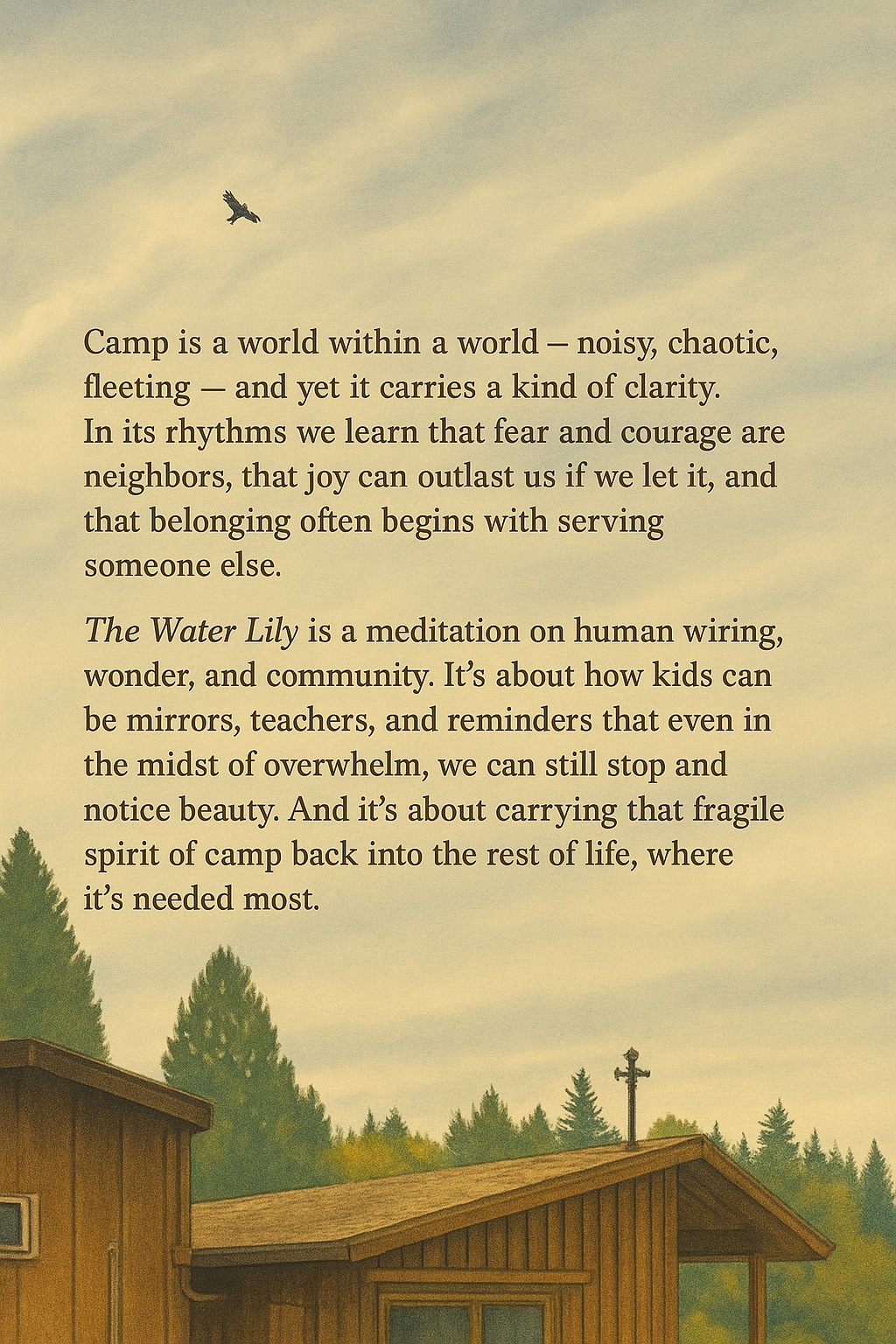 I wrote The Water Lily in the three days after I returned from camp. It wasn’t a planned project so much as a way of processing everything I had just lived through — the kids, the stories, the way camp pulled threads of my own past and wove them into the present. The words came quickly, almost faster than I could type, like the story had been waiting for me.